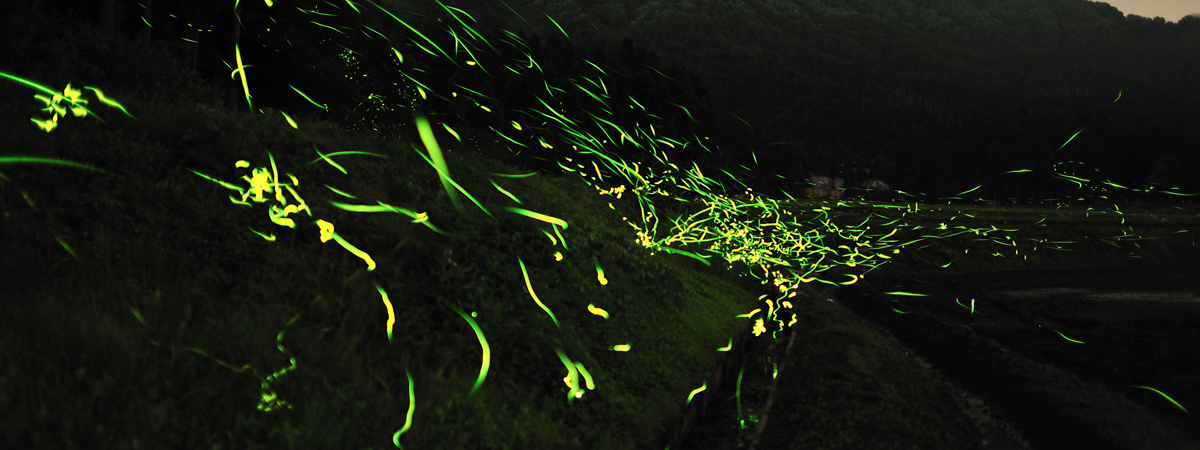 ホタルだけを撮っても面白くありません。背景に山や木があったり、川の流れがあったり、街の明かりがあるなど、ホタルがいる環境も合わせて撮影することで、その地ならではのホタル写真になります。天気が良ければ、星空とホタルのコラボレーションも狙えます。